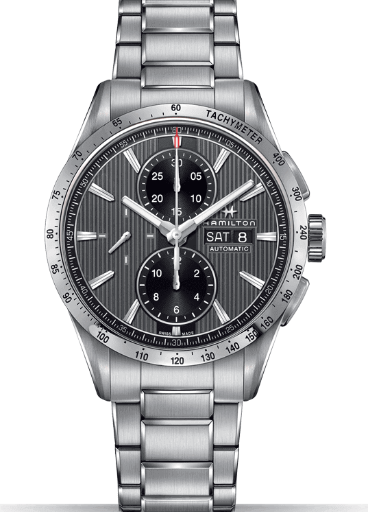 Perfetti per l'uomo giovane e attivo, i modelli Broadway assicurano standard tecnici ed estetici di assoluta eccellenza. Il retro della cassa nero conferisce un tocco metropolitano al segnatempo. Il quadrante, abbellito da decise linee verticali la cui parte centrale si espande sino al cinturino, richiama i grattacieli di Broadway. Il Broadway Auto Chrono di Hamilton è dotato di un calendario che, grazie alla sua… moderna posizione a ore 3, fornisce una pratica visualizzazione della data, del giorno della settimana.