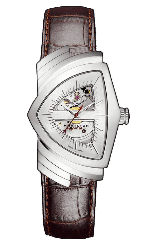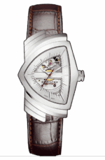 Il Ventura è un fedele omaggio al modello originale del 1957, che passò alla storia dell’orologeria come il primo orologio elettrico a batteria al mondo. I dettagli della cassa del nuovo modello rispecchiano quelli dei suoi antenati, insieme alla caratteristica forma a scudo. Questa versione automatica presenta aperture sul quadrante che rivelano il movimento in azione