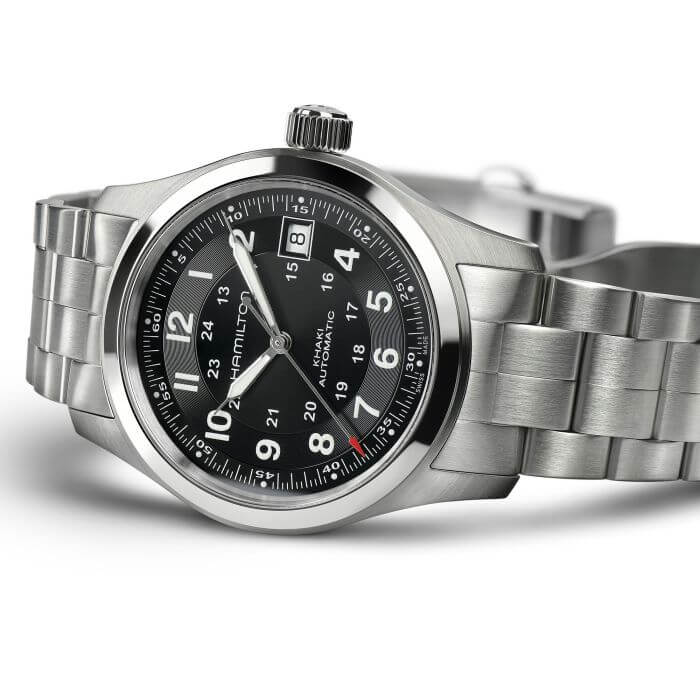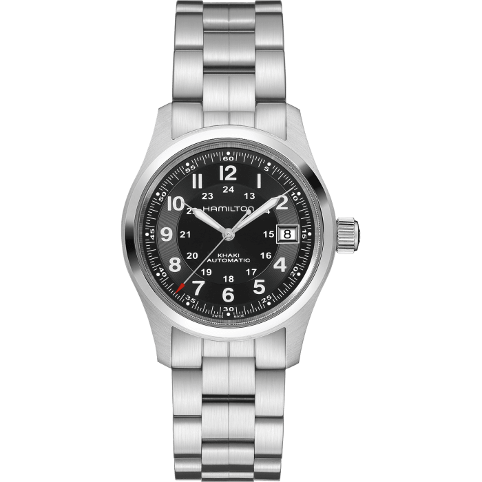 Nel pianificare una spedizione, occorre un’attrezzatura affidabile, resistente, funzionale e compatta. Con i suoi 38 mm, questo orologio punta in alto in termini di funzioni di ispirazione militare. Look audace, cassa e cinturino robusti e resistenti e un movimento che non ti pianterà in asso. Con 80 ore di riserva di carica garantite dall’esclusivo calibro automatico H-10, il Khaki Field Auto sarà sempre al tuo fianco.