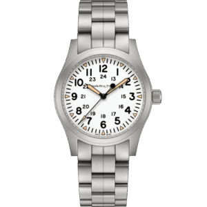 Nel pianificare una spedizione, occorre un’attrezzatura affidabile, resistente, funzionale e compatta. Con i suoi 38 mm, questo orologio punta in alto in termini di funzioni di ispirazione militare. Look audace, cassa e cinturino robusti e resistenti e un movimento che non ti pianterà in asso. Con 80 ore di riserva di carica garantite dall’esclusivo calibro automatico H-10, il Khaki Field Auto sarà sempre al tuo fianco.Scopri la nostra collezione di estilo militar