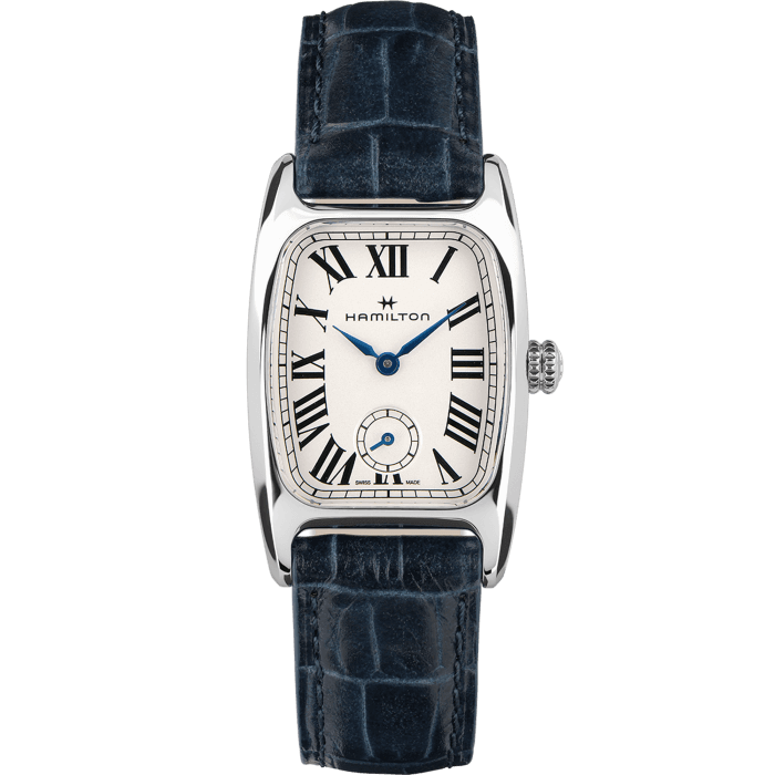 Lo stile Art Deco incontra il classico stile americano con il nuovo Hamilton Boulton. La peculiare forma della cassa rende il Boulton un vero punto fermo della collezione Hamilton fin dalla sua prima comparsa nel 1940. Reinterpretato in una versione perfetta per il XXI secolo, il Boulton presenta il classico stile americano tipico di Hamilton che non passa mai di moda.