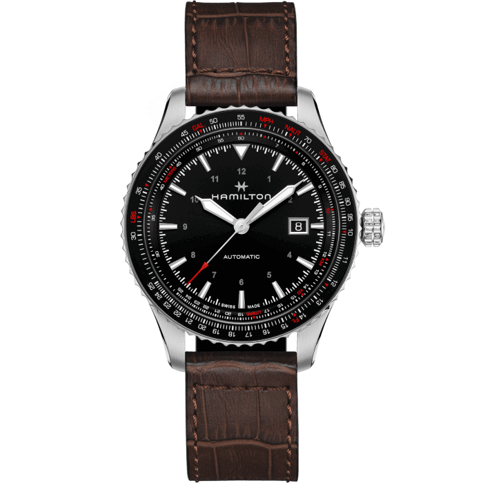 L’alta tecnologia incontra lo stile sofisticato nel Khaki Aviation Converter. La lunetta girevole bidirezionale con regolo calcolatore effettua facilmente calcoli e conversioni complicate, e la spirale in silicio anti-magnetica più avanzata in assoluto, NivachronTM, garantisce precisione in ogni ambiente. Perfetto per il pilota moderno o per il jet setter urbano, il quadrante nero da 42 mm avvolge il movimento automatico H-10 con 80 ore di riserva di carica.