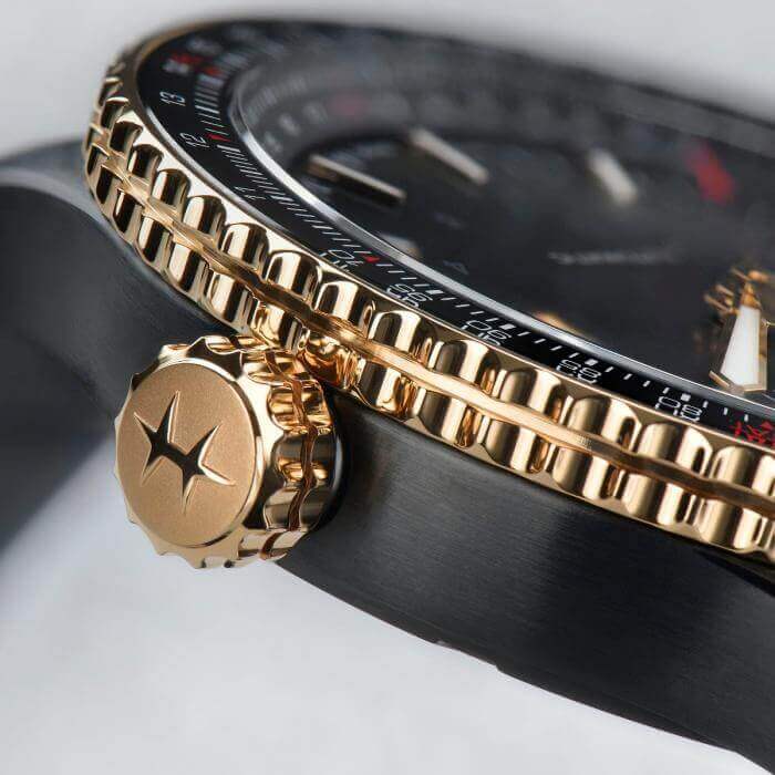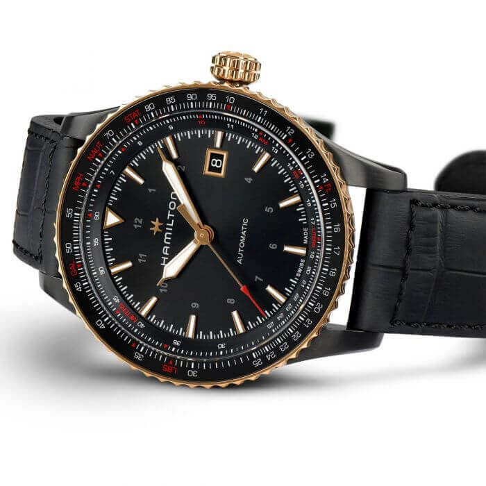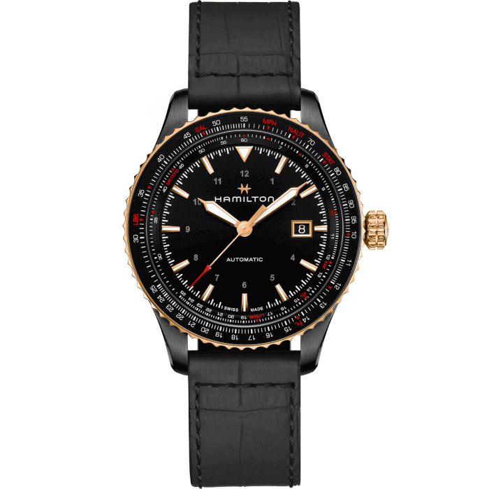 L’alta tecnologia incontra lo stile sofisticato nel Khaki Aviation Converter. La lunetta girevole bidirezionale con regolo calcolatore effettua facilmente calcoli e conversioni complicate, e la spirale in silicio anti-magnetica più avanzata in assoluto, NivachronTM, garantisce precisione in ogni ambiente. Perfetto per il pilota moderno o per il jet setter urbano, il quadrante nero da 42 mm avvolge il movimento automatico H-10 con 80 ore di riserva di carica.