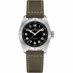 Preparati per un’avventura all’aria aperta con il Khaki Field Expedition, un orologio ideale per tutte le attività outdoor con un design a bussola, che ti permetterà, durante le escursioni, di orientarti con l’aiuto del sole. Racchiuso in una cassa in acciaio da 37 mm corredata da un cinturino in pelle verde, questo orologio è dotato di corona a vite per proteggere il movimento in qualunque condizione atmosferica. Dotato di un quadrante nero testurizzato con rivestimento in Super-LumiNova® per una leggibilità eccezionale, il Khaki Field Expedition possiede tutta la robustezza di cui hai bisogno.