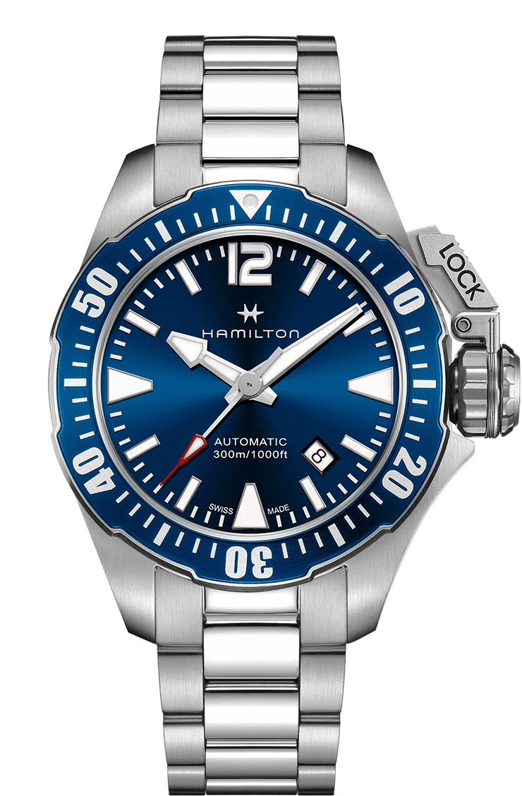 Creato per i sommozzatori della Marina americana e apparso nel celebre film del 1951 Le rane del mare, questo nuovo orologio dispone di funzioni subacquee di livello assoluto. La sua cassa in acciaio da 42 mm ospita una lunetta girevole nera unidirezionale in acciaio ed è impermeabile fino a 30 bar/300 metri.