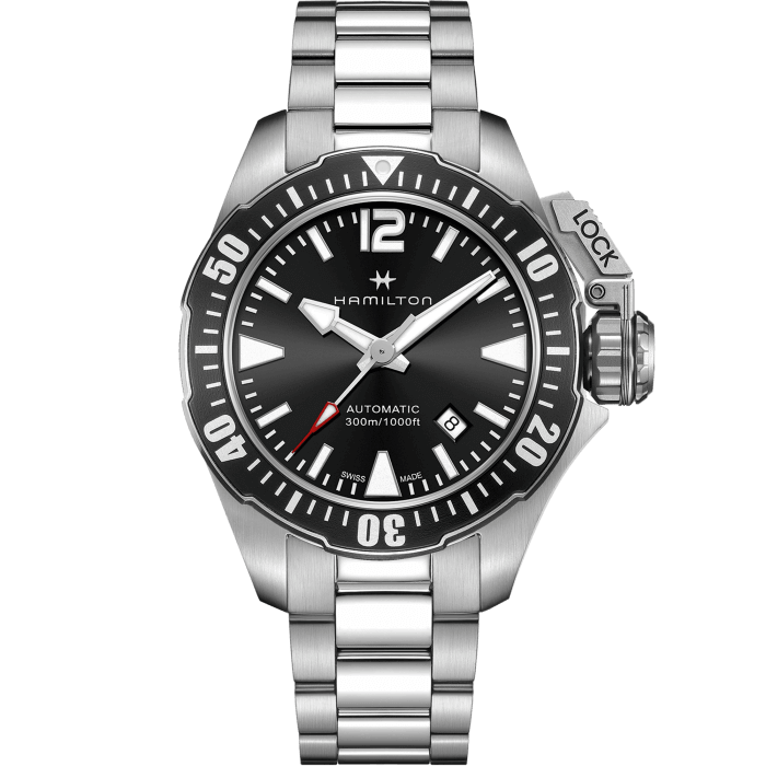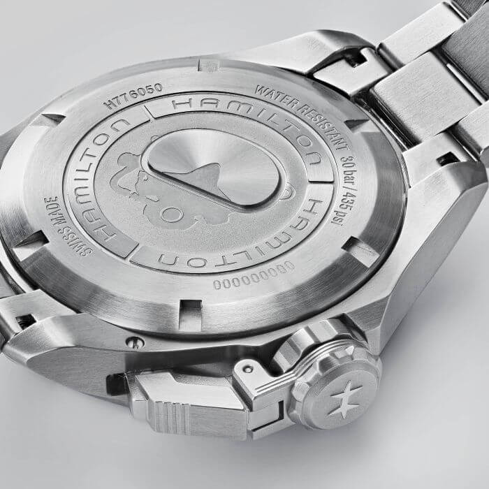 L’Hamilton Frogman originale era stato creato per i sommozzatori della Marina americana ed è apparso nel celebre film del 1951 “Le rane del mare”. Da allora sono passati quasi 70 anni e la tecnologia ha fatto passi da gigante nell’orologeria. Le caratteristiche essenziali che hanno decretato il successo dell’orologio, non inferiore a quello del film, sono però le stesse: lunetta girevole unidirezionale, elevata impermeabilità e luminescenza subacquea.