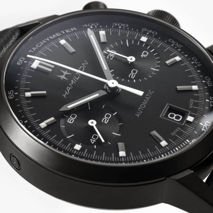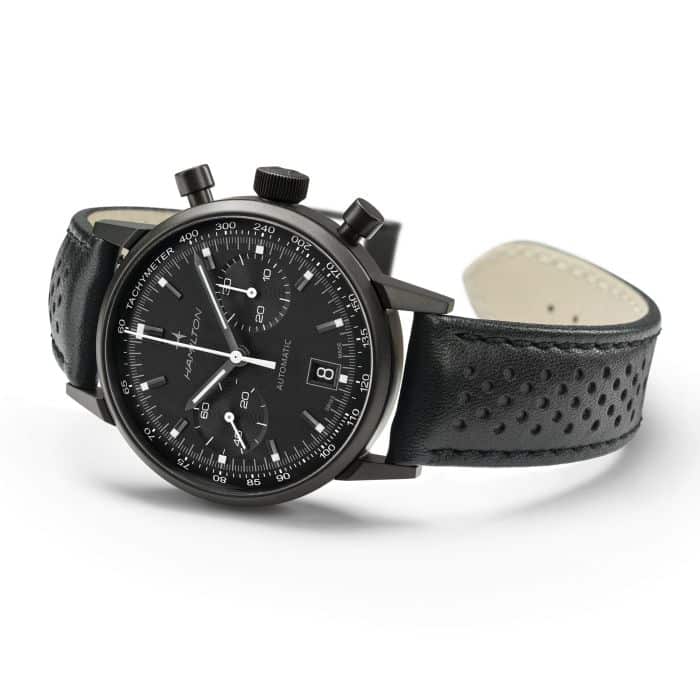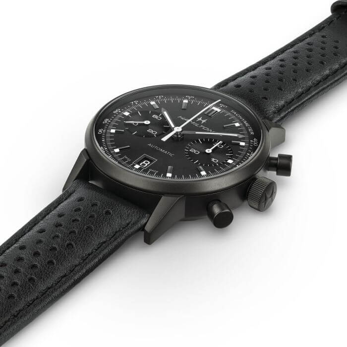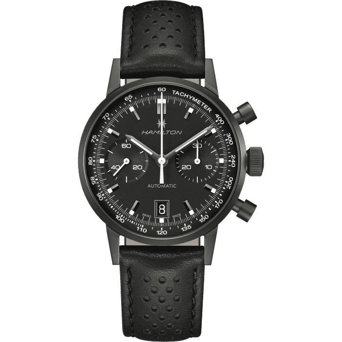 Ispirato alle sue radici negli sport automobilistici, che risalgono al 1968, l’Intra-Matic Auto Chrono accoglie una nuova interpretazione dell’iconico design Intra-Matic. Rivisitazione moderna di un classico vintage, la cassa da 40 mm con rivestimento in PVD, il quadrante e il cinturino traforato total black aggiungono un tocco contemporaneo a un modello storico degli anni ‘70.