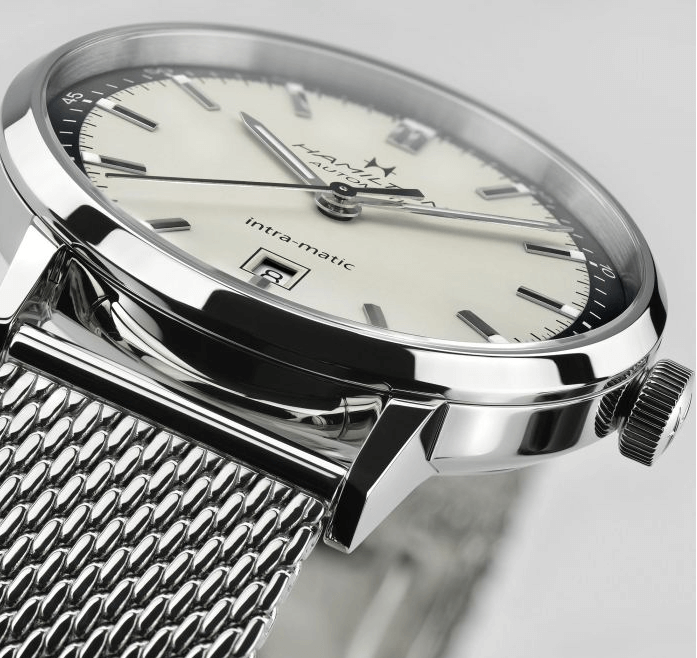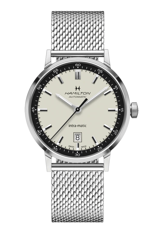 Con uno straordinario quadrante bicolore, l'intra-Matic Automatico presenta uno stile d'ispirazione vintage che lo rende la scelta giusta da indossare sia in ufficio sia per un weekend fuori porta. Animato dall'esclusivo movimento H-10, caratterizzato dalla lega anti-magnetica Nivachron, questo inconfondibile segnatempo da 40 mm è preciso, affidabile e ricco di personalità.