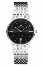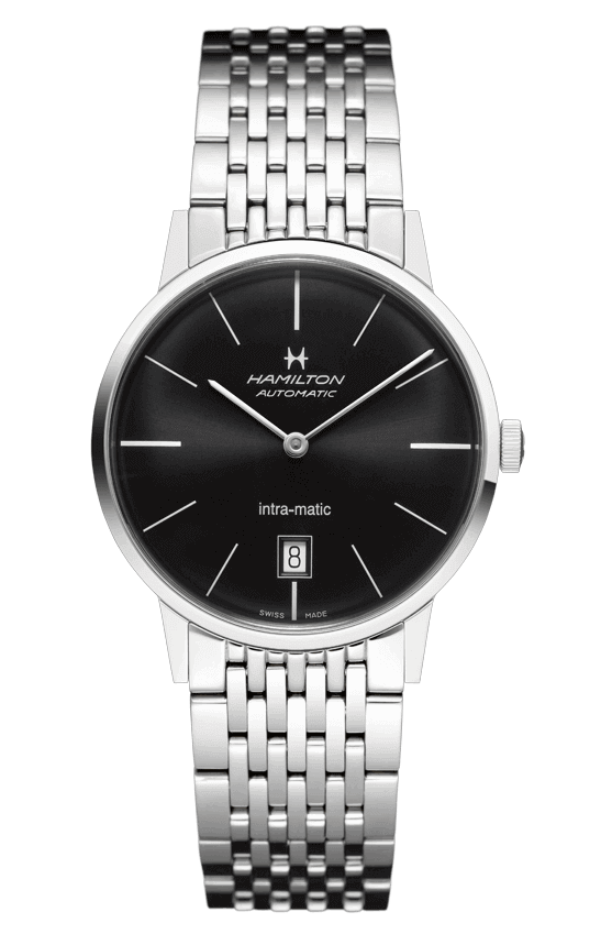 Con un orgoglioso omaggio a un best seller Hamilton dei tempi che furono, il nuovo segnatempo afferma il suo carattere elegante grazie alla purezza del design. Il quadrante nero o argentato è bombato e accoglie due lancette leggermente incurvate, espressione della quintessenza dell’orologeria Hamilton