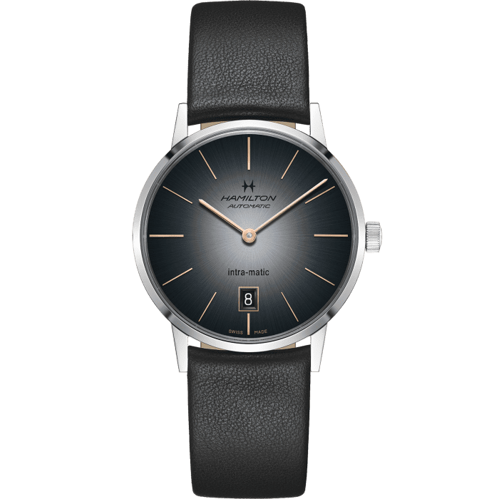 I dettagli sfumati e avvolgenti del nuovo Hamilton Intra-Matic sono tipici dello stile vintage di American Classic. L'Intra-Matic si rifà alla ricca storia di Hamilton per un orologio maschile, che unisce dettagli moderni e lo stile vintage più puro tipico della collezione Hamilton American Classic.
