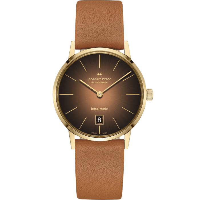 I dettagli sfumati e avvolgenti del nuovo Hamilton Intra-Matic sono tipici dello stile vintage di American Classic. L’Intra-Matic si rifà alla ricca storia di Hamilton per un orologio maschile, che unisce dettagli moderni e lo stile vintage più puro tipico della collezione Hamilton American Classic.