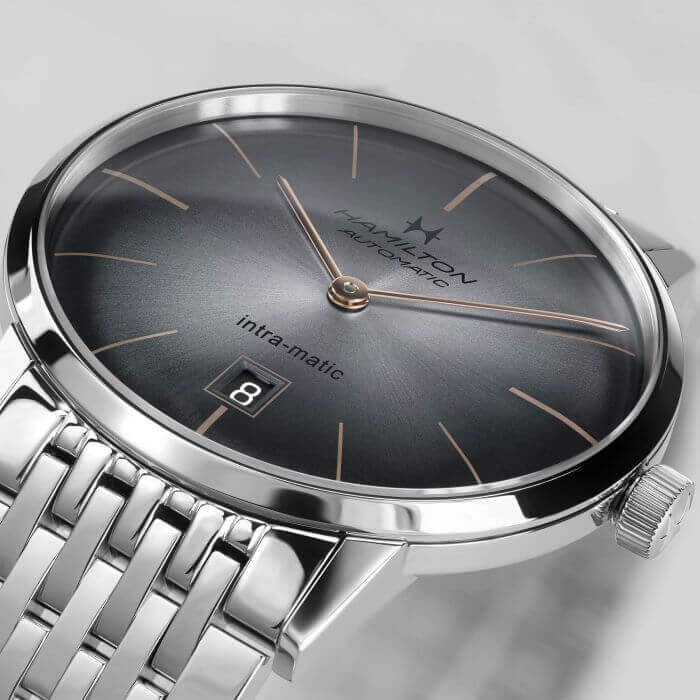 I dettagli sfumati e avvolgenti del nuovo Hamilton Intra-Matic sono tipici dello stile vintage di American Classic. L’Intra-Matic si rifà alla ricca storia di Hamilton per un orologio maschile, che unisce dettagli moderni e lo stile vintage più puro tipico della collezione Hamilton American Classic.
