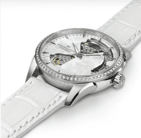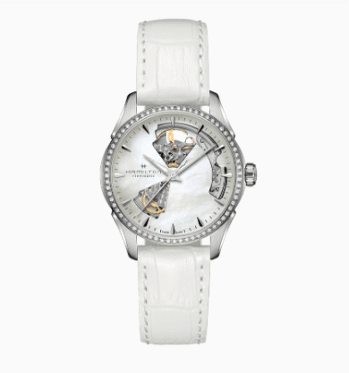 Il Jazzmaster Open Heart da 36 mm è un perfetto connubio di raffinatezza contemporanea e savoir-faire artigianale d’eccezione. Il disegno traforato con la massima precisione consente di ammirare il movimento automatico Swiss-made Hamilton in azione mentre scandisce il tempo e accompagna ogni momento importante della nostra vita. Le molteplici combinazioni di quadranti e cinturini realizzati con materiali di alta qualità offrono alla donna moderna un’ampia scelta.
