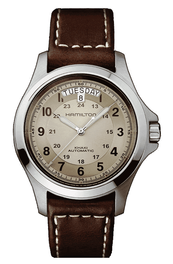 La tradizione militare Hamilton si rintraccia sul quadrante di questo splendido segnatempo Khaki Field King Auto con protezioni appositamente progettate per garantire la sicurezza della corona in ogni momento. Lunga vita al re.Scopri la nostra collezione di estilo militar