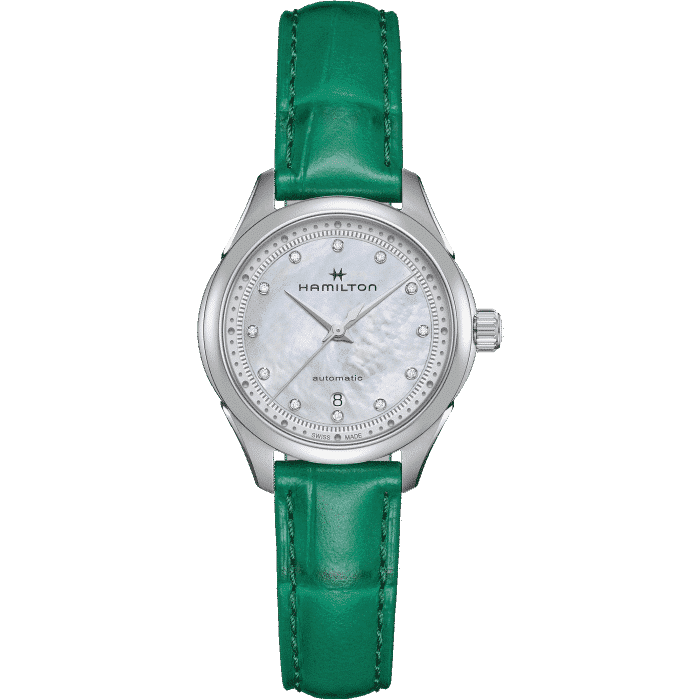 Il nuovo Hamilton Jazzmaster Lady Auto, Swiss Made, presenta una notevole ricercatezza nelle forme così come al suo interno, permettendo a colei che lo indossa di destreggiarsi nei frenetici ritmi giornalieri con efficienza ed eleganza. Il moviemento automatico creato con cura artigianale, cuore e anima del segnatempo, è visibile attraverso il fondello confermando così come la tecnologia e la femminilitàà possano percorrere in armonia, il ventunesimo secolo