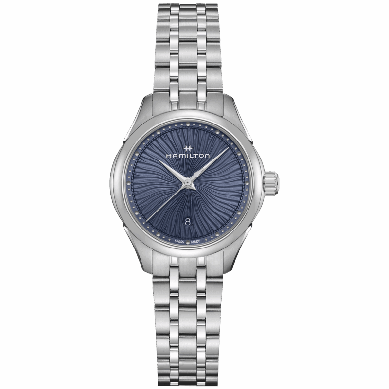Le linee aggraziate creano l’illusione di un movimento sul quadrante bianco argenté, blu notte e nero velluto del nostro Jazzmaster Lady Quartz. Abbinato a un elegante bracciale o a un morbido cinturino in pelle, questo sofisticato segnatempo da 30 mm sublima ogni look.