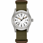 Uno dei segnatempo più iconici di Hamilton è ora disponibile con una cassa più grande. Animato dall’esclusivo movimento a carica manuale H-50, il Khaki Field Mechanical 42 mm conserva la forma originale con una cassa in acciaio con finitura sabbiata e quadrante facilmente leggibile in bianco o nero. Abbinata ad un comodo bracciale in acciaio o ad un cinturino NATO in tessuto verde, questa versione rivisitata di un orologio militare dal design robusto e resistente non ti farà perdere nessuna avventura.Scopri la nostra collezione di estilo militar