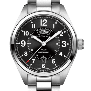 L’originale Murph, icona del mondo del cinema, viene rivisitato in chiave moderna. Su un quadrante nero si stagliano numeri leggermente bombati, per una leggibilità ottimale, e sfere a forma di cattedrale, che gli conferiscono un tocco vintage. L’originale versione da 38 mm è ora disponibile con un bracciale in metallo spazzolato a 3 maglie, che saprà soddisfare tanto gli amanti di Hamilton quanto quelli di Hollywood.