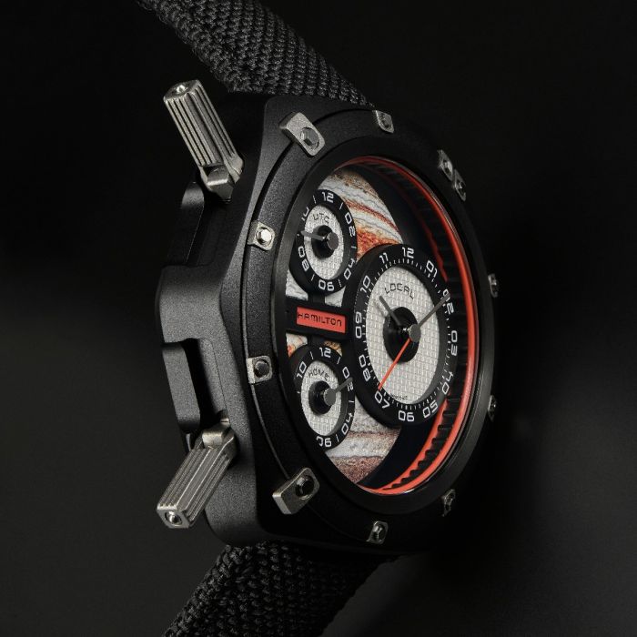Il noto scenografo Nathan Crowley ha ricevuto diversi riconoscimenti per il suo lavoro sul set. La sua visione unica ha dato vita all’ODC X-03 in edizione limitata. Ispirandosi al pianeta Giove, ha messo alla prova le competenze orologiere di Hamilton per creare un capolavoro futuristico che utilizza i materiali più recenti e la microtecnologia. Stellare.