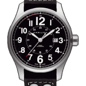 Il Khaki Officer Auto con il suo movimento automatico unisce la natura selvaggia della linea Khaki con la semplicità e la raffinatezza della linea Jazzmaster. I numeri di grandi dimensioni sul quadrante offrono una dichiarazione coraggiosa adatto per qualsiasi comandante