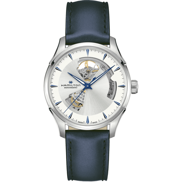 L’orologeria classica incontra il design contemporaneo in questo Jazzmaster Open Heart Automatic blu e argento. Le precise traforature del quadrante da 40 mm permettono di ammirare il movimento interno prodotto in Svizzera e donano a questo segnatempo sofisticato grande personalità.
