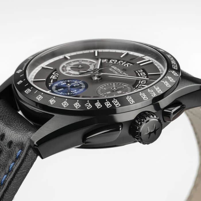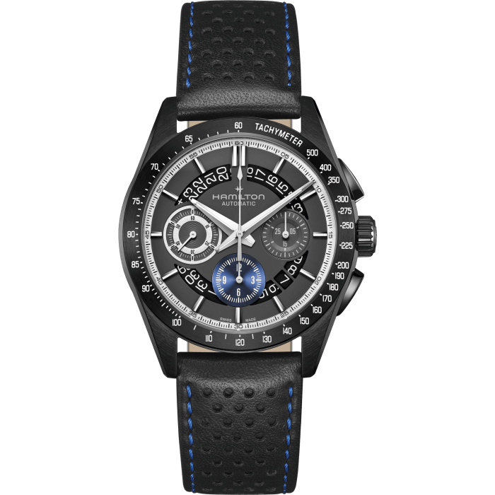 Dallo stile intramontabile rivisitato in chiave moderna, il Jazzmaster Performer Auto Chrono 42 mm offre una versione contemporanea di un orologio per tutti i giorni, pur mantenendo il suo caratteristico spirito sportivo. Mostrando l’ora sull’anello esterno, i tre contatori cronografici misurano il tempo trascorso. Racchiuso in un’elegante cassa con trattamento in PVD abbinata a un cinturino in pelle nera, il Jazzmaster Auto Chrono 42 mm vanta una riserva di carica da 60 ore e un movimento H-31.