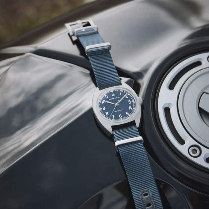 La nostra meravigliosa tonalità di blu porta questa riedizione della Royal Air Force degli anni ‘70 in alto nei cieli. Indossa il Khaki Pilot Pioneer Mechanical e rendi omaggio alla storia di Hamilton dedicata a cronometrare i cieli.Scopri la nostra collezione di estilo militar