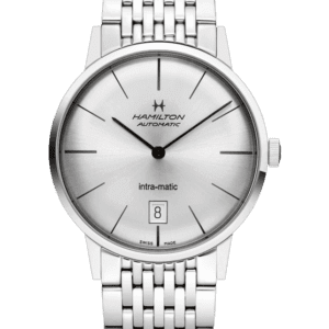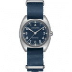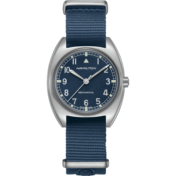 Con il suo caratteristico fascino rétro, il Khaki Pilot Pioneer Auto 38 mm continua a rendere omaggio alla ricca tradizione aeronautica e militare di Hamilton. Rivestito in verde muschio e dotato di una lunetta girevole colorata, è animato dal movimento H-10 con una riserva di carica di 80 ore. Un quadrante bianco guscio d’uovo e un cinturino in pelle verde conferiscono a questo orologio uno stile senza tempo.