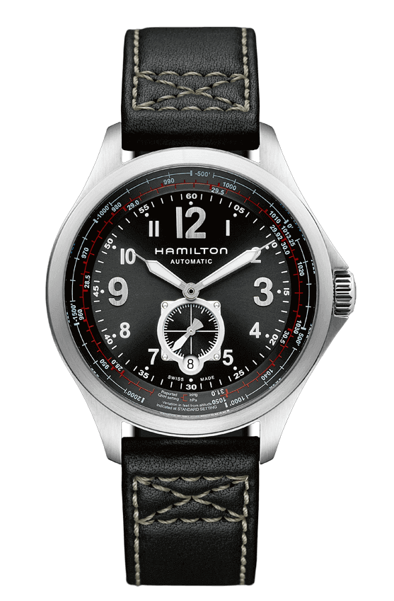 Il Khaki Aviation QNE inaugura nuovi orizzonti quanto a stile e funzionalità. Questo esclusivo segnatempo da 42 mm, dotato di scala per la rilevazione di pressione e altitudine, rappresenta l'accessorio ideale per piloti e aspiranti tali. Del resto, l'alfabeto aeronautico ‘Zulu’, inciso sul fondello, esclude qualsiasi rischio di equivoco con la torre di controllo o altri interlocutori di primaria importanza