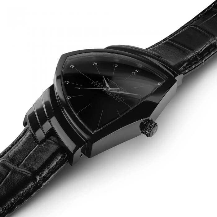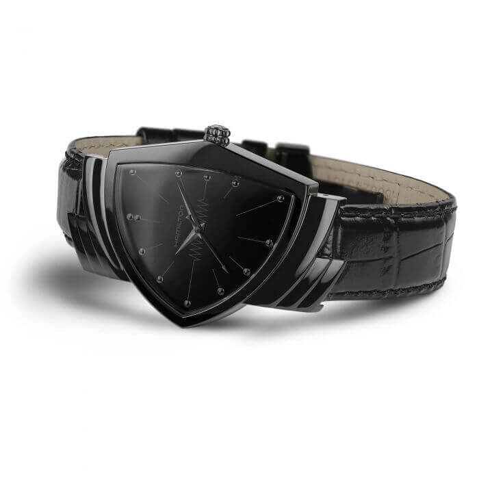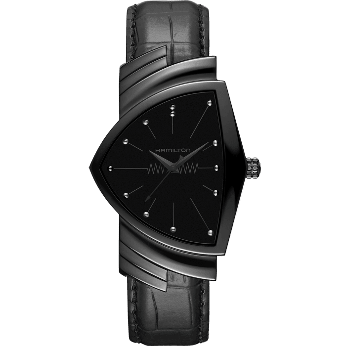 Il Ventura originale, presentato nel 1957, passò alla storia dell’orologeria come il primo orologio elettrico a batteria al mondo. Con il suo design unico e audace, divenne rapidamente un’icona e un oggetto da collezione. L’ultima interpretazione del Ventura è un fedele tributo all’originale e richiama la pionieristica forma a scudo della cassa, esempio di design moderno “Mid-Century”.
