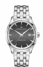 Semplice ed elegante con bracciale e cassa in acciaio, il tutto in abbinamento con il grigio del quadrante. Orologio da polso con movimento al quarzo e quadrante da 40mm. Orologio Hamilton della collezione Jazzmaster.