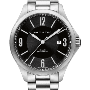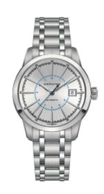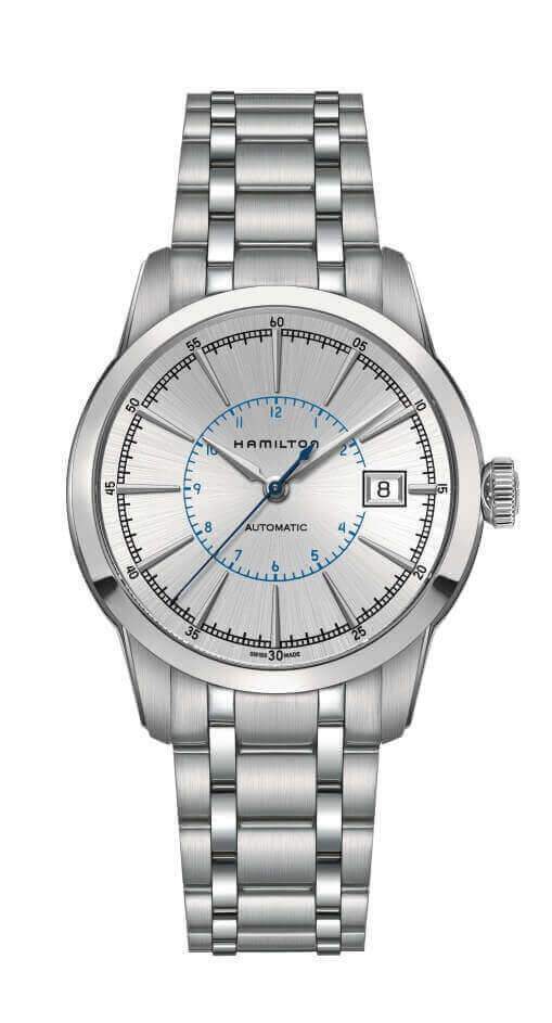 Riportare l'immaginazione all'epoca degli orologi da tasca è quello che aspira a fare la collezione RailRoad auomatica, attraverso le sue linee verticali. L'ultimo ingresso nella linea è caratterizzato da un movimento a carica manuale H-10 con 80 ore di riserva di carica. in confronto agli altri modelli uno sfondo nero o grigio in contrasto con gli indici crea linee circolari per sottolineare il tema di RailRoad.