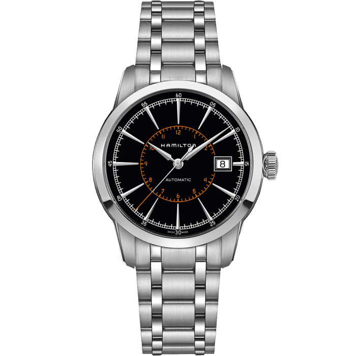 Hamilton non sottovaluta mai la forza di un segnatempo classico a tre sfere che si ispira alla sua tradizione, al suo stile esclusivo e allo spirito americano. Dalle ferrovie del passato alla vita di oggi: il movimento automatico H-10 con 80 ore di riserva di carica e il vivace quadrante che ricorda le ruote dei primi treni a vapore sono fatti l’uno per l’altro.