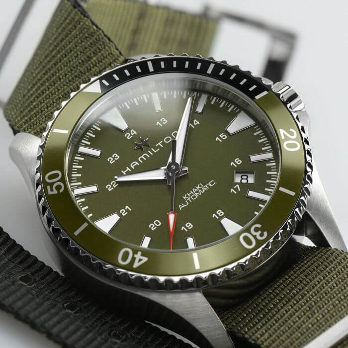 Con diverse combinazioni di quadranti e cinturini colorati, il Khaki Navy Scuba Auto ha uno stile pensato per fare colpo. Il suo preciso movimento Swiss-made scandisce il tempo sia in spiaggia che nell’oceano, mentre il suo design accattivante conferisce un fresco tocco nautico a qualsiasi look.