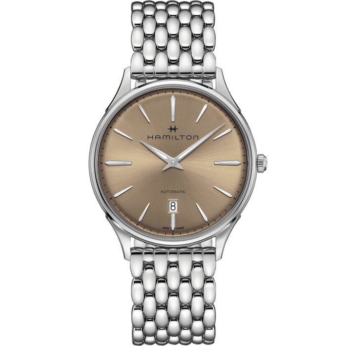 Con la nuova collezione Jazzmaster Thinline Automatic, Hamilton offre l’opportunità di creare un segnatempo che si adatta alla perfezione al proprio stile personale. L’aspetto minimal ed essenziale del Jazzmaster Thinline, con la sua cassa da 40 mm in acciaio lucido, ribadisce lo stile raffinato e la qualità per cui è celebre la linea Jazzmaster..