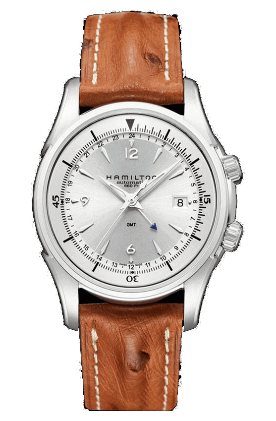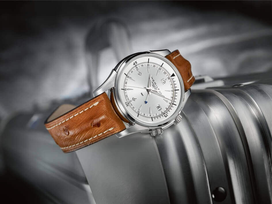 Il Jazzmaster Traveler GMT, con la seconda zona oraria, porta la linea Jazzmaster verso nuovi orizzonti. È l’unico modello Jazzmaster con funzione GMT