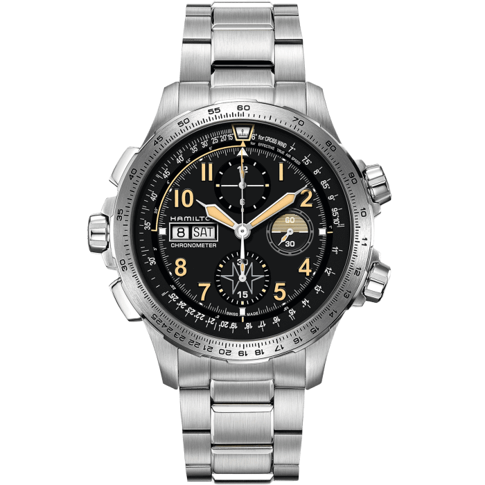 Il Khaki X-Wind Auto Chrono 2018 in edizione limitata è dotato di numerose caratteristiche tecniche pensate per i piloti e comprende fra l’altro il rivoluzionario calcolatore dell’angolo di deriva di Hamilton. Prodotto in soli 1.918 esemplari, utilizza l’H-21-Si, il primo movimento cronografo Hamilton con spirale in silicio ad essere certificato dal COSC.