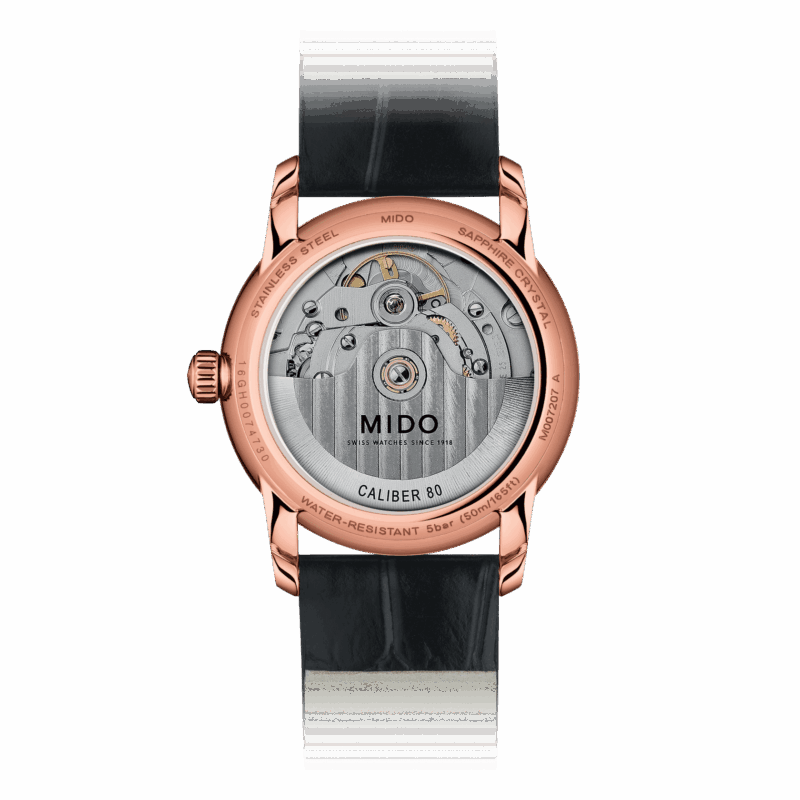 Nel suo costante impegno per l’eccellenza, MIDO ha integrato in questo movimento la rivoluzionaria spirale Nivachron™. L’innovativa lega di metallo a base di titanio riduce le interferenze magnetiche e offre una grande resistenza agli urti e all’usura.