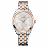 L’orologio svizzero Belluna Royal mostra la sua eleganza e originalità grazie ad una cassa a forma di cuscino, alle sue curve armoniose e ad un quadrante stampato con motivo a raggi in stile guilloché. Il suo cuore batte al ritmo del movimento automatico Calibro 80 con una riserva di carica fino a 80 ore.