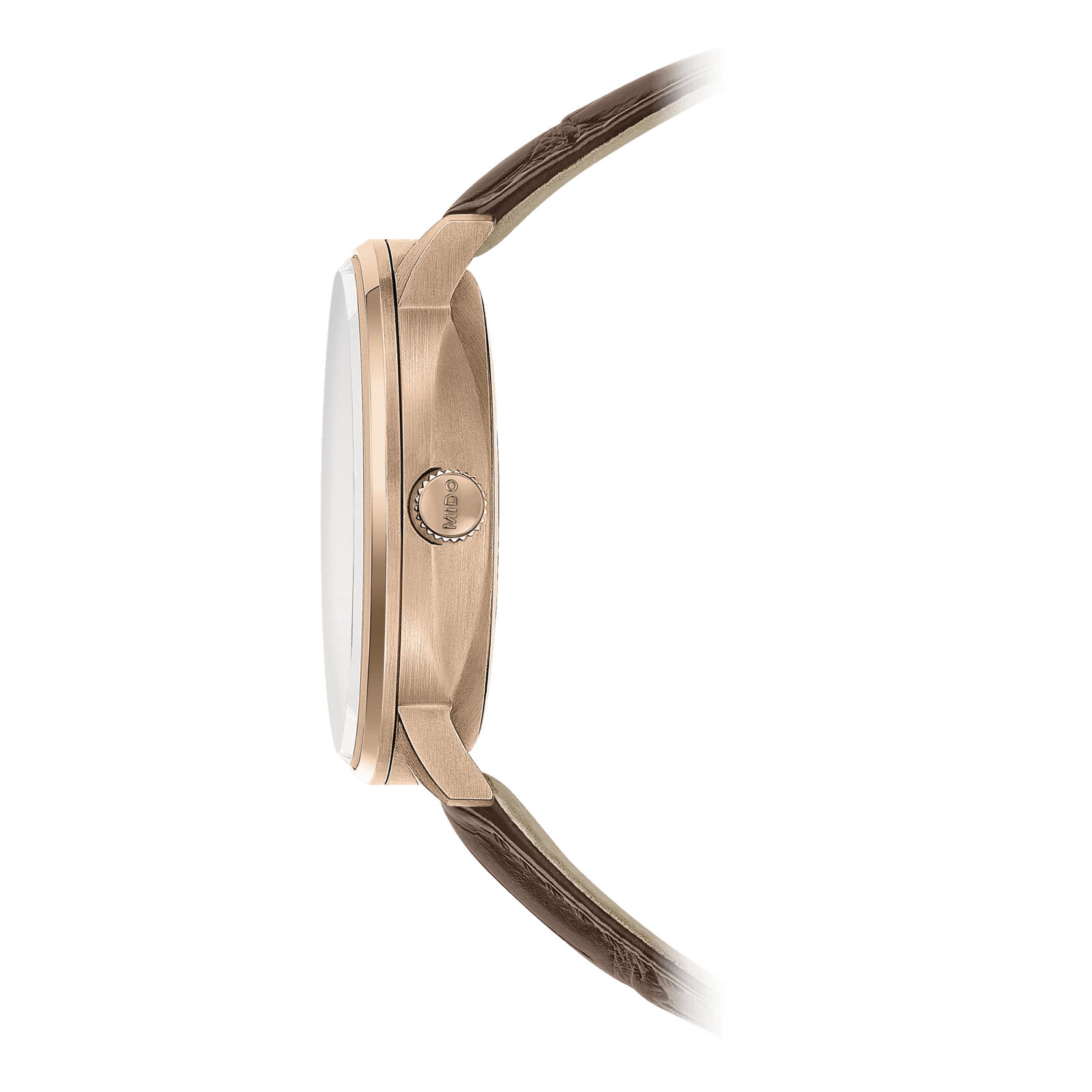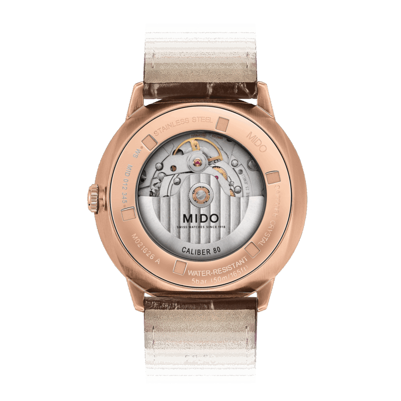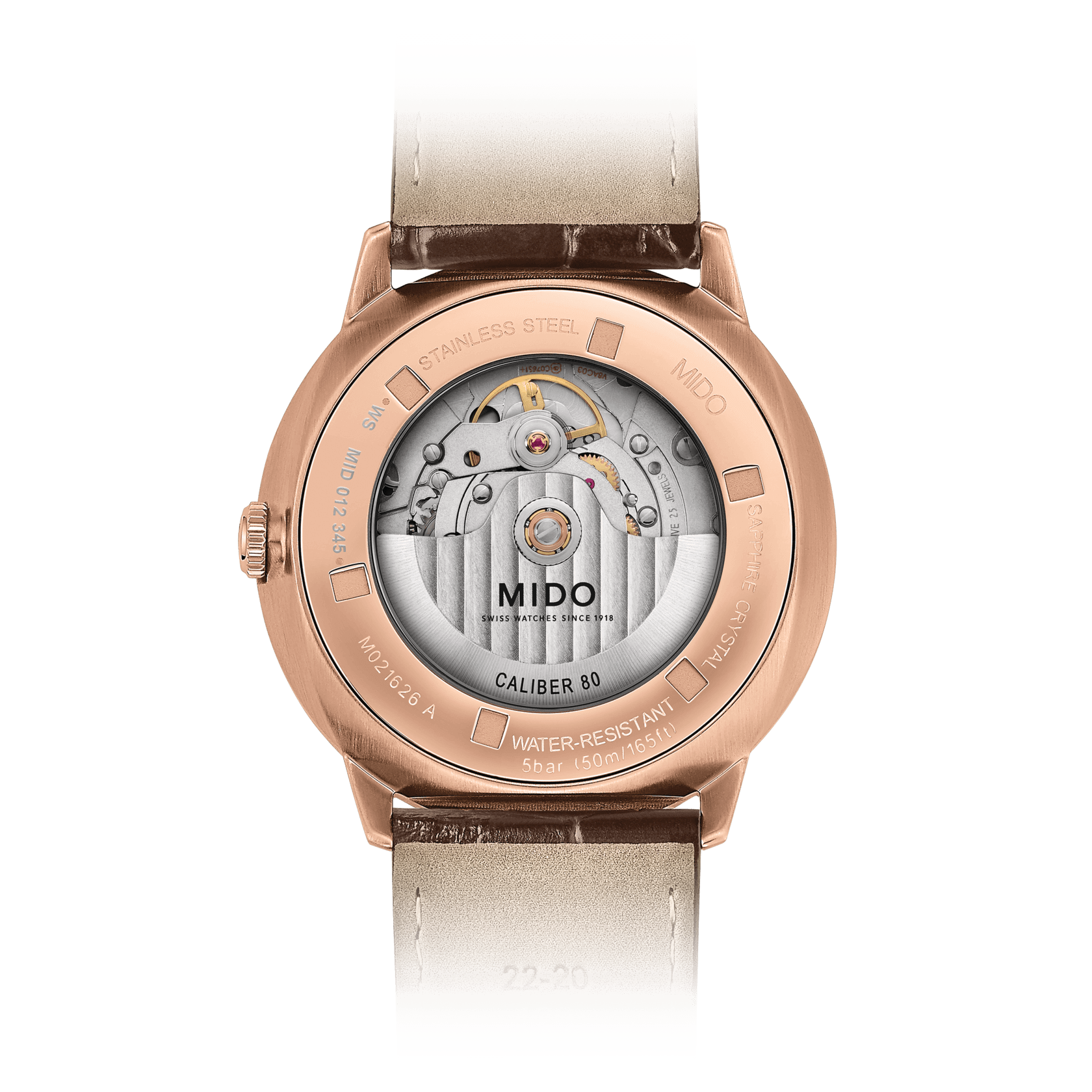 The MIDO Caliber 80 represents a major advance in self-winding movements. Thanks to its new-generation technology, it offers up to 80 hours of power reserve – twice as much as a conventional movement.