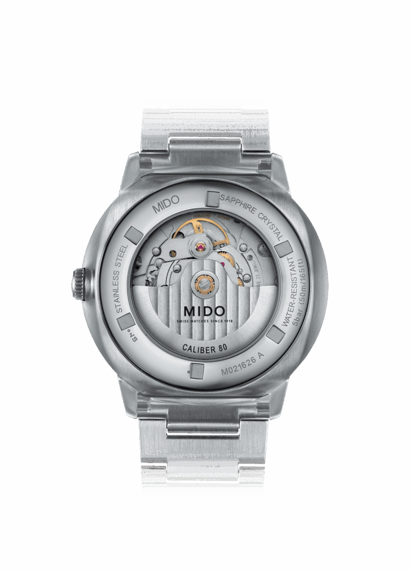 The MIDO Caliber 80 represents a major advance in self-winding movements. Thanks to its new-generation technology, it offers up to 80 hours of power reserve – twice as much as a conventional movement.