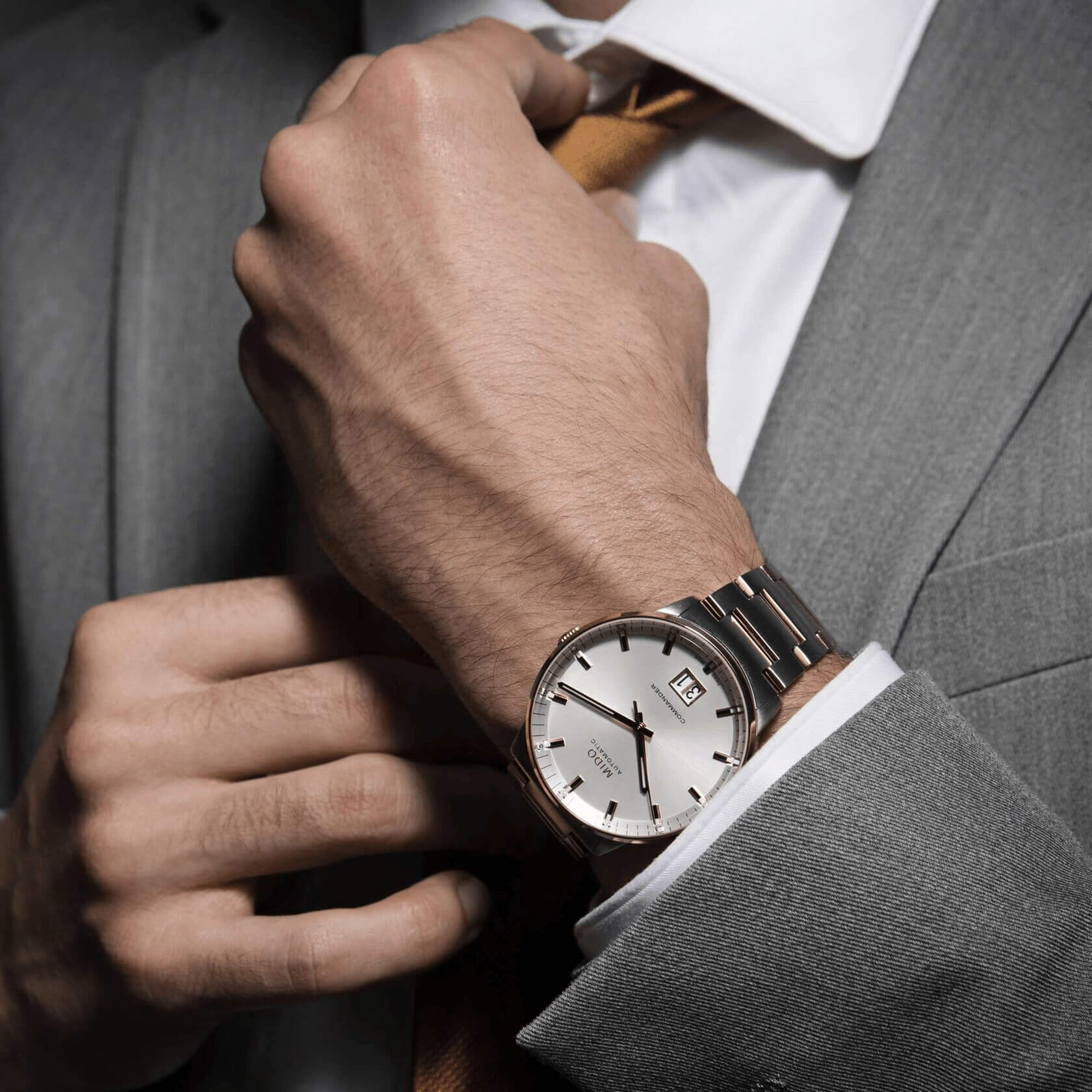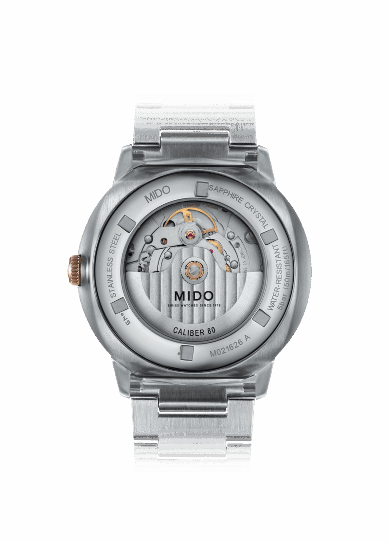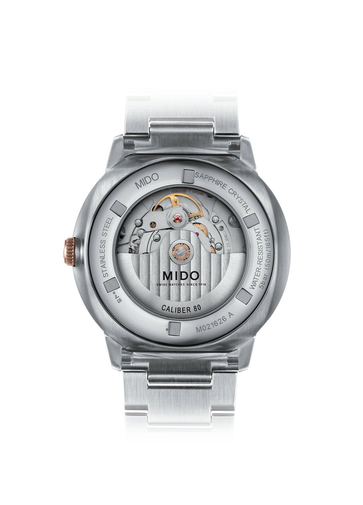 The MIDO Caliber 80 represents a major advance in self-winding movements. Thanks to its new-generation technology, it offers up to 80 hours of power reserve – twice as much as a conventional movement.