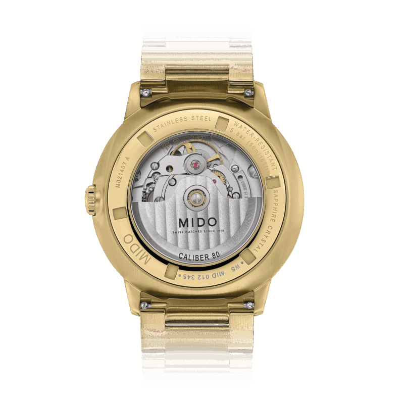 The MIDO Caliber 80 represents a major advance in self-winding movements. Thanks to its new-generation technology, it offers up to 80 hours of power reserve – twice as much as a conventional movement.