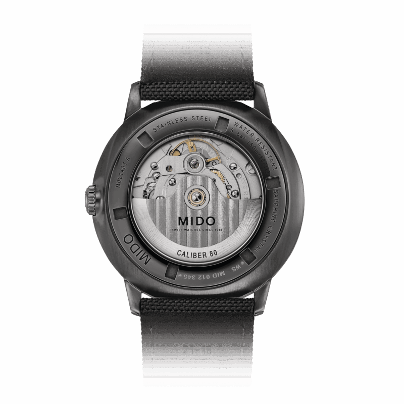 The MIDO Caliber 80 represents a major advance in self-winding movements. Thanks to its new-generation technology, it offers up to 80 hours of power reserve – twice as much as a conventional movement.