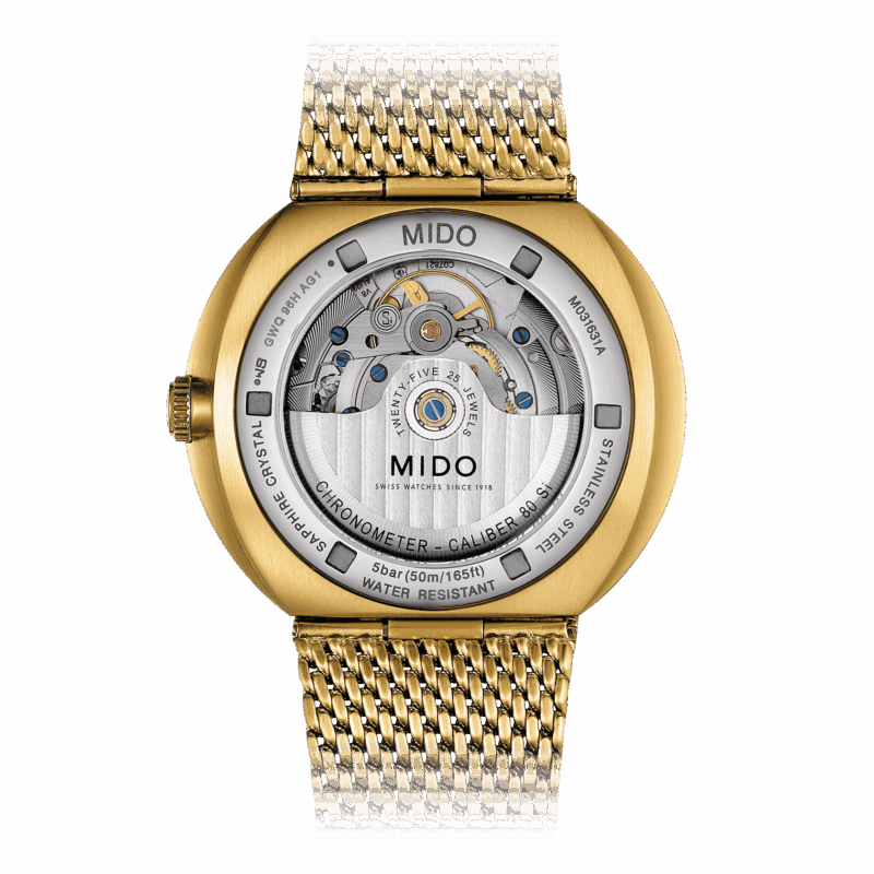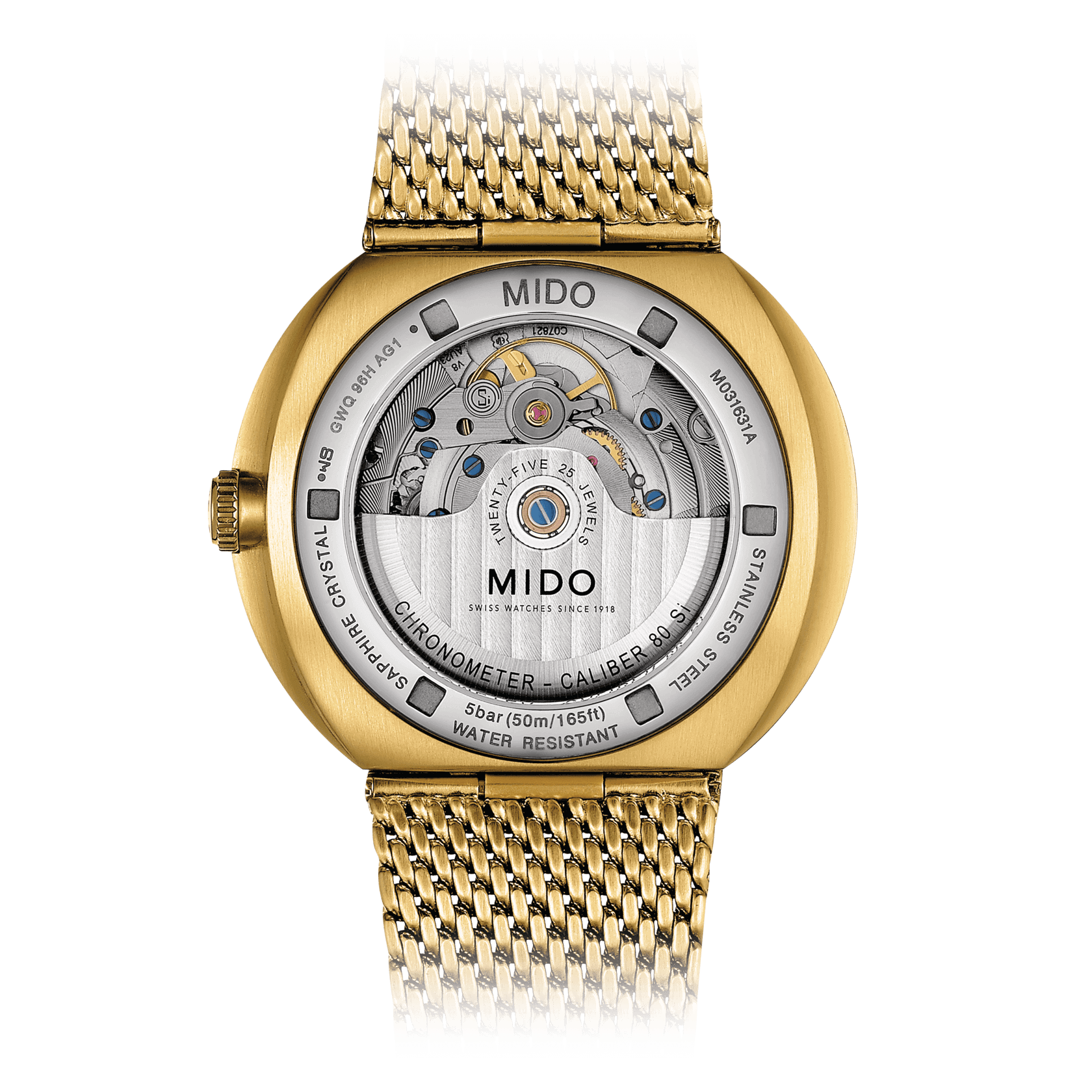 Il movimento MIDO Caliber 80 con cronometro di ultima generazione è dotato di una spirale in silicio. Oltre alle proprietà non amagnetiche, offre una maggior precisione e una resistenza agli urti maggiori. Assicura fino a 80 ore di autonomia.