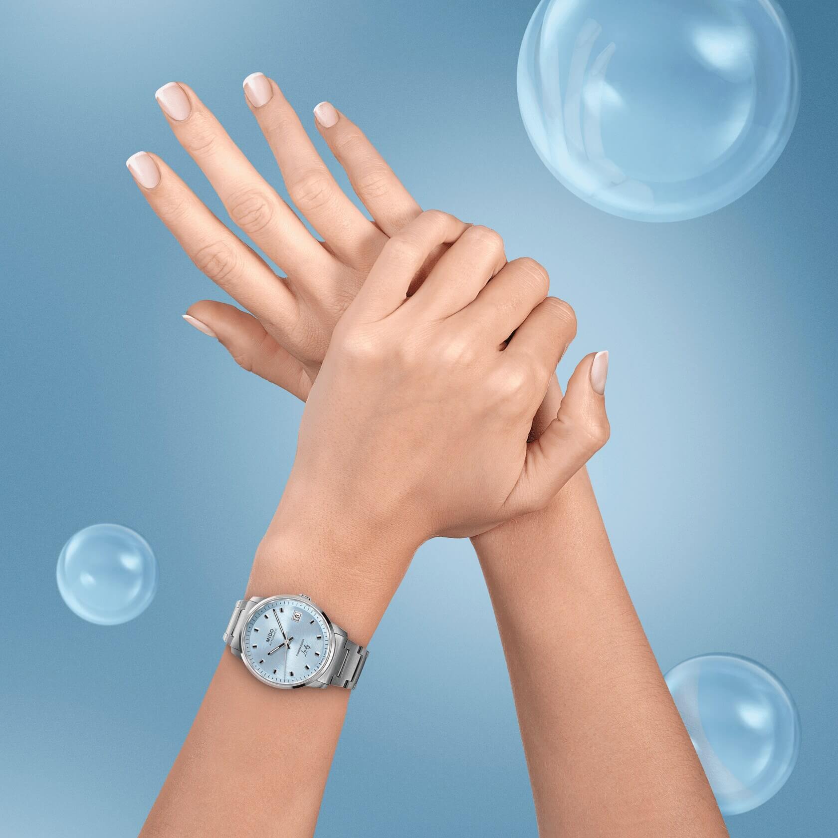 Per i suoi componenti, MIDO utilizza esclusivamente acciaio inox di alta qualità, minuziosamente lavorato in varie finiture. Ipoallergenico e facile da mantenere, questo materiale è resistente alla corrosione e ai campi magnetici e offre una maggiore durata.