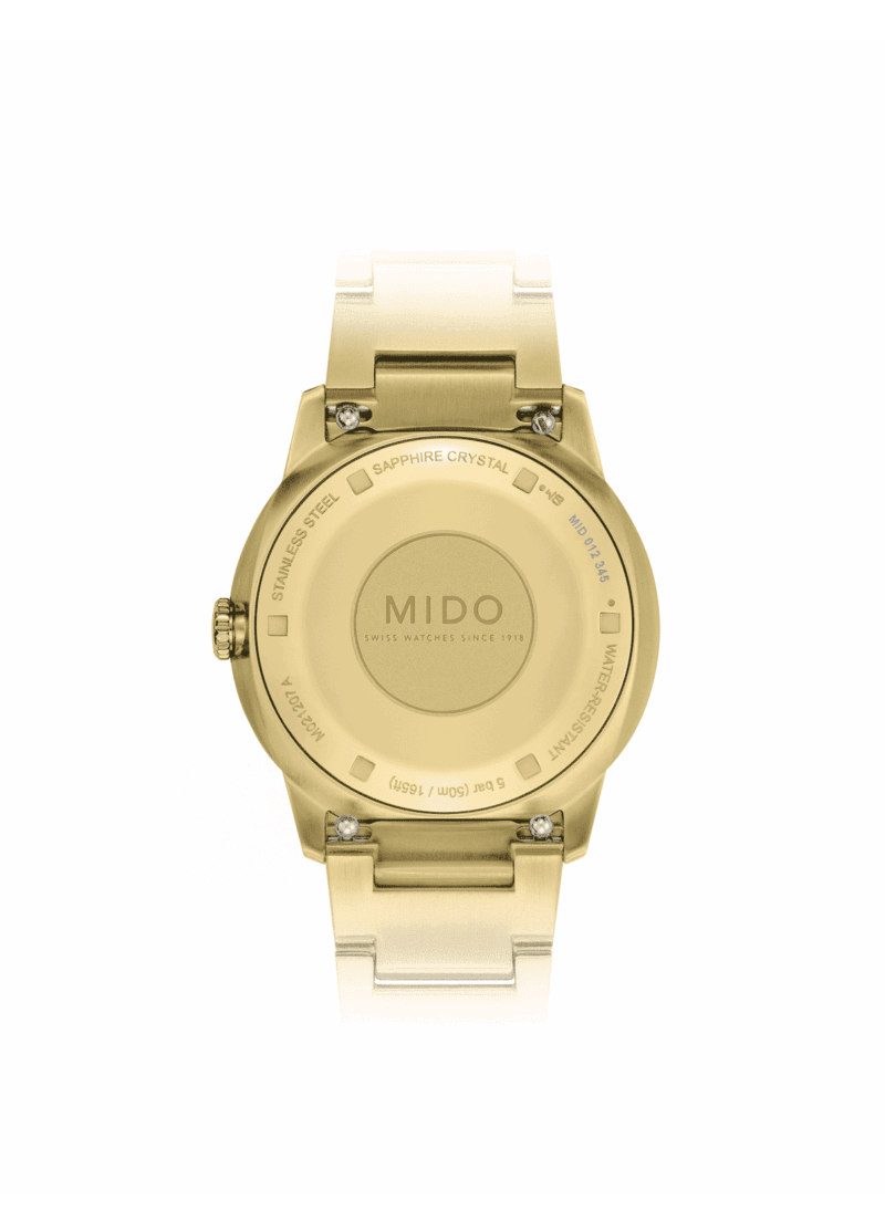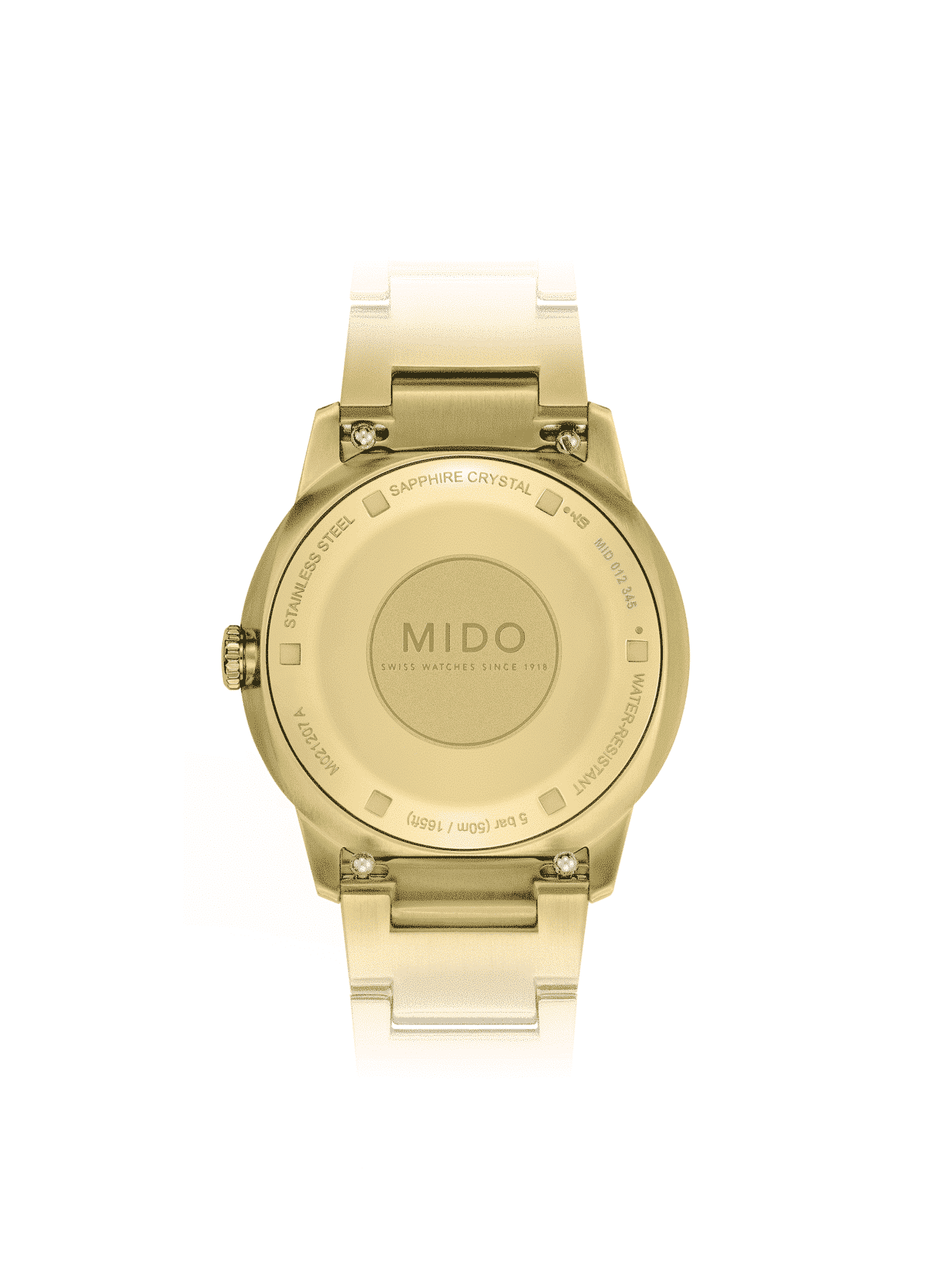 MIDO offre un’ampia gamma di tonalità PVD, come il nero, l’oro rosa o l’oro giallo.