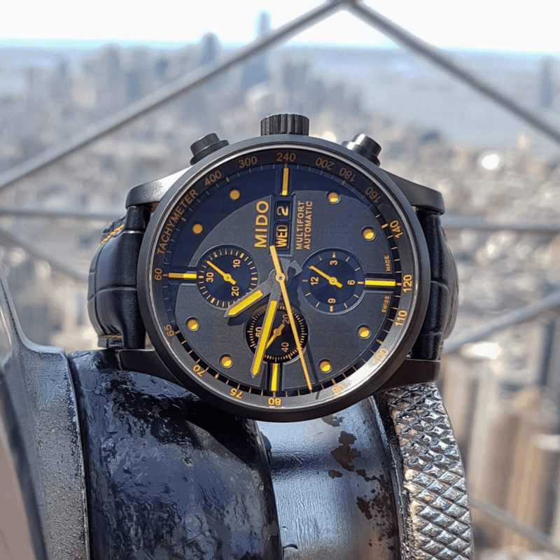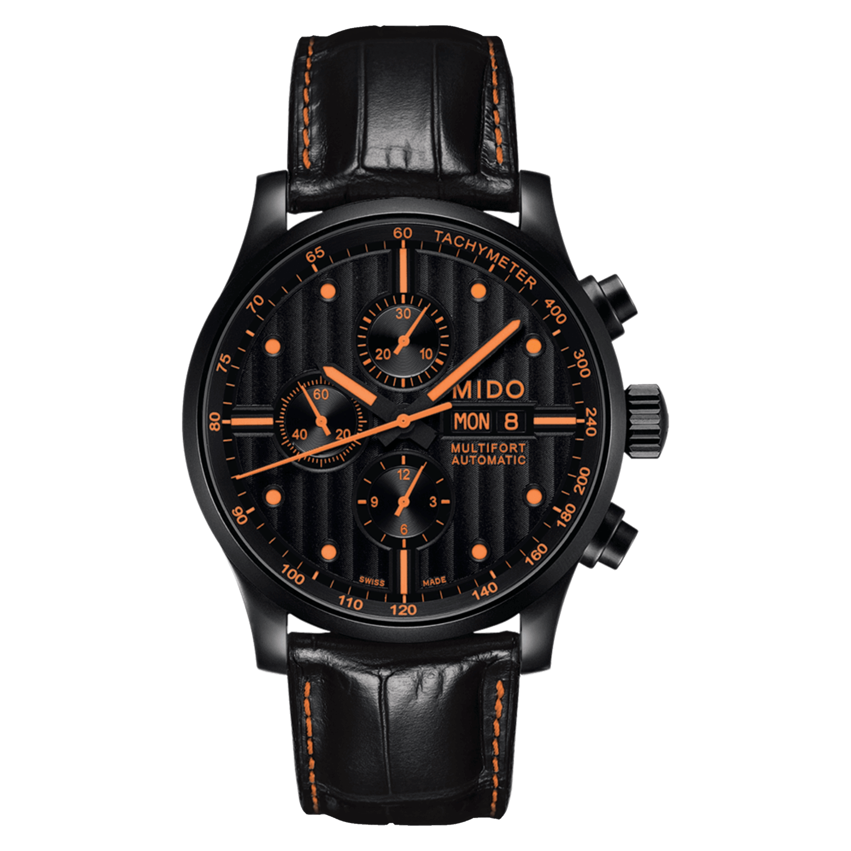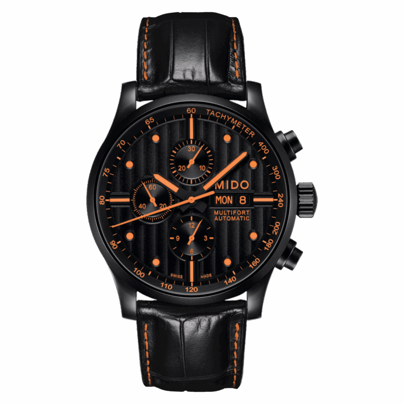 Un orologio MIDO con cronografo è dotato di un meccanismo che consente di misurare intervalli di tempo precisi. Facilmente riconoscibile, è dotato di pulsanti, di contatori e di una lancetta dei secondi posizionata al centro del movimento.