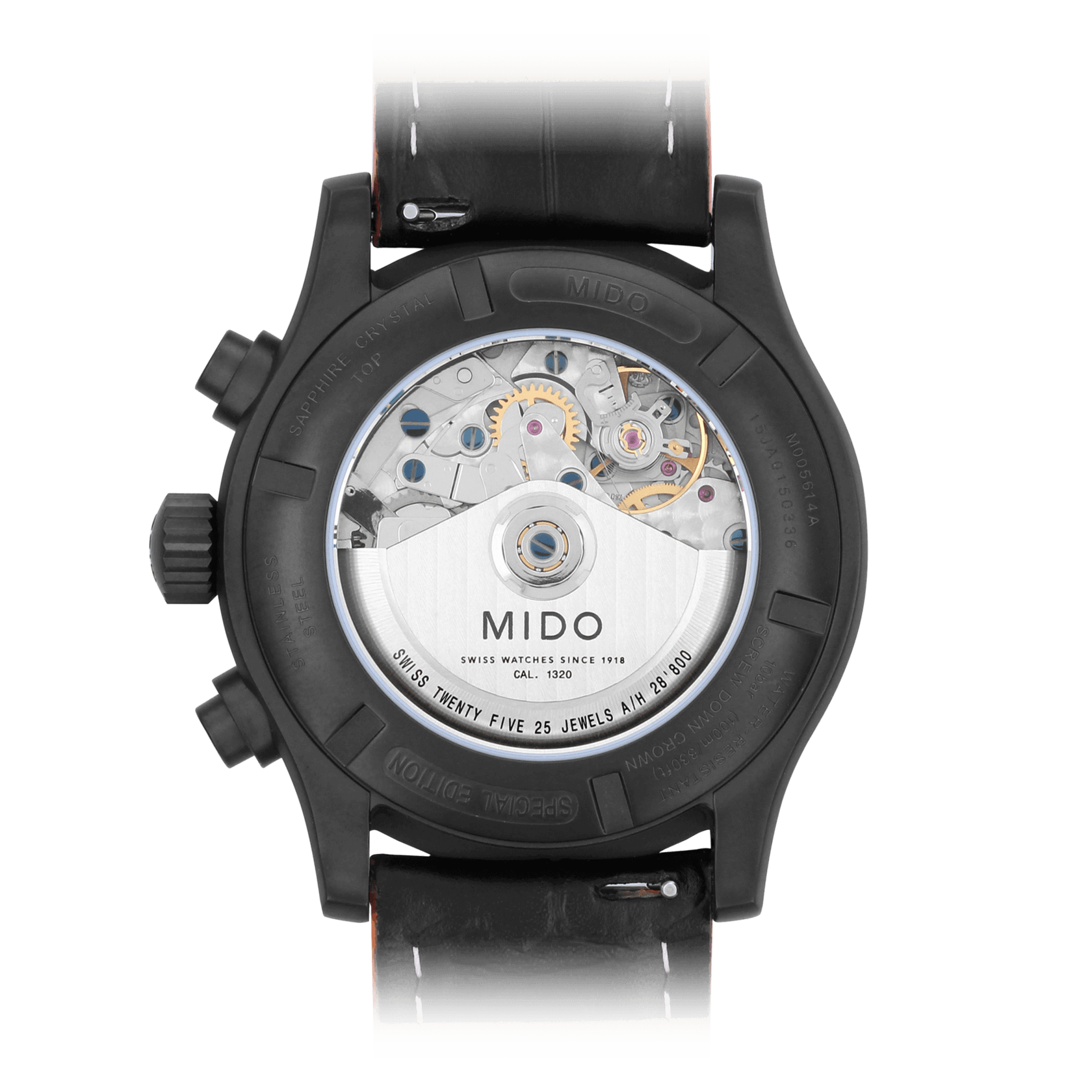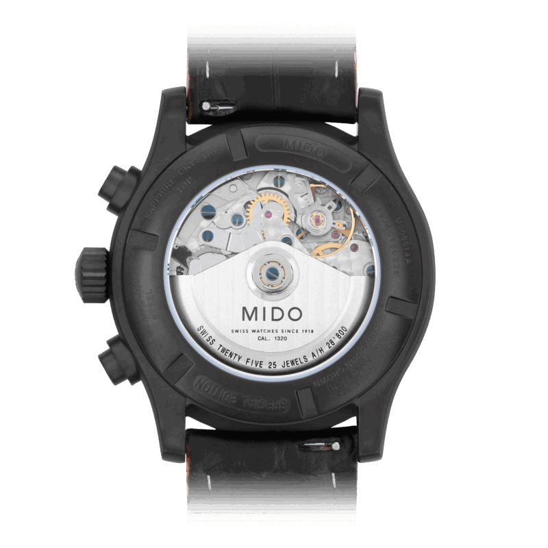 Il Calibro 60 MIDO è un movimento cronografo a carica automatica all’avanguardia dal punto di vista tecnologico. Offre una riserva di carica fino a 60 ore, superando le consuete 48 ore di una versione standard.