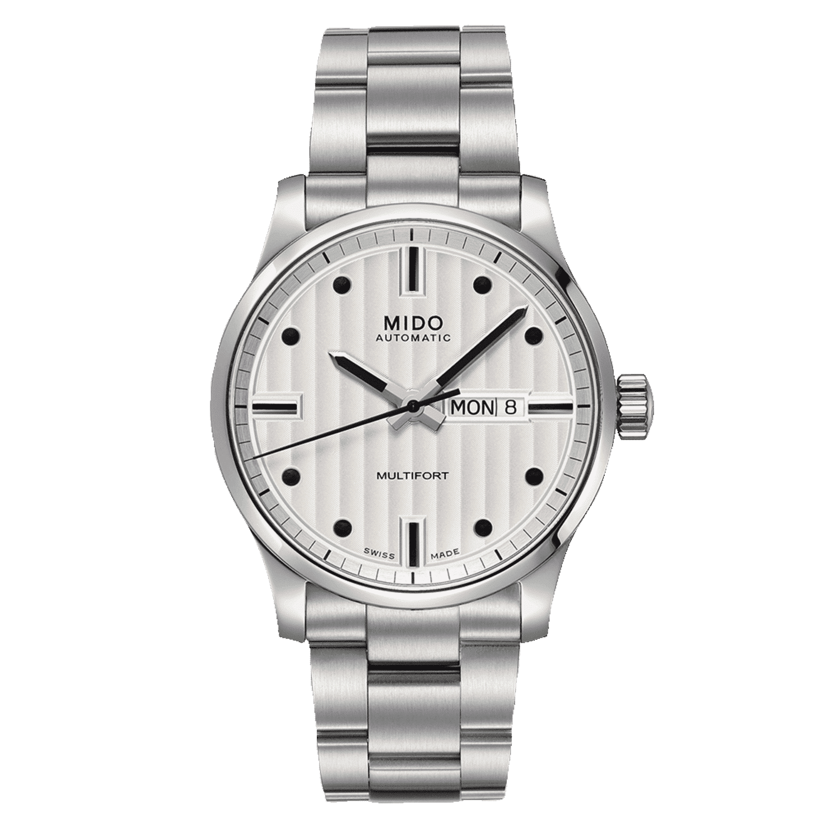 Per i suoi componenti, MIDO utilizza esclusivamente acciaio inox di alta qualità, minuziosamente lavorato in varie finiture. Ipoallergenico e facile da mantenere, questo materiale è resistente alla corrosione e ai campi magnetici e offre una maggiore durata.